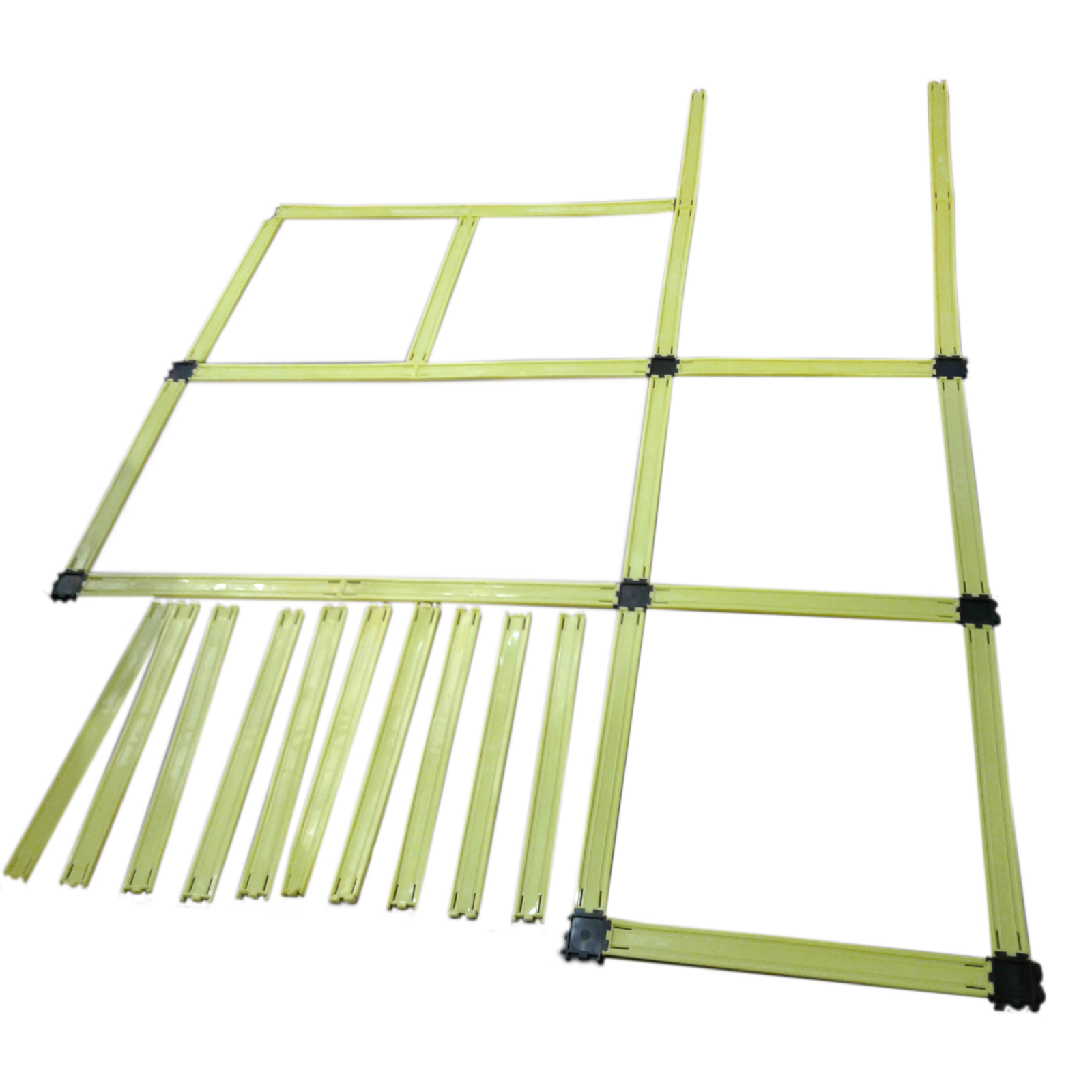 Material: 30 peldaños en polietileno de 4cm X 45cm color verde con sus respectivas uniones color negro.